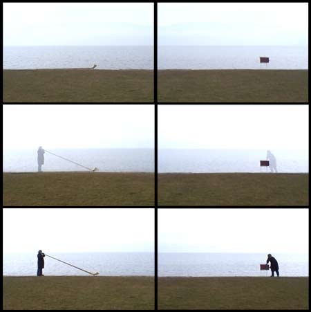 TWO SCREEN VIDEO PROJECTION OF PERFORMANCE WITH ALPHORN & FOGHORN